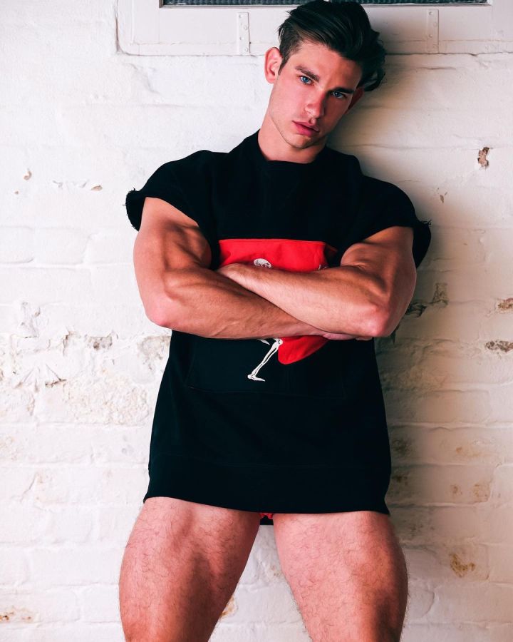 Other photos that I have bought: Box Menswear model Alex Parker and another model named Jordan. The photos are more of the models interacting with space. The models have been in the gym or have a physique developed with athletics. Most have sunlight and one is under studio lights.