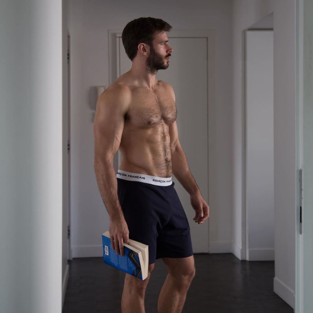I knew of Garcon Francais brand from Instagram from Killian Belliard, a model and fitness influencer. Garcon Francais posted some photographs of Killian in Garcon Francais lounge shorts on the brand’s Instagram profile. (Photographer: Pascalpprl.)